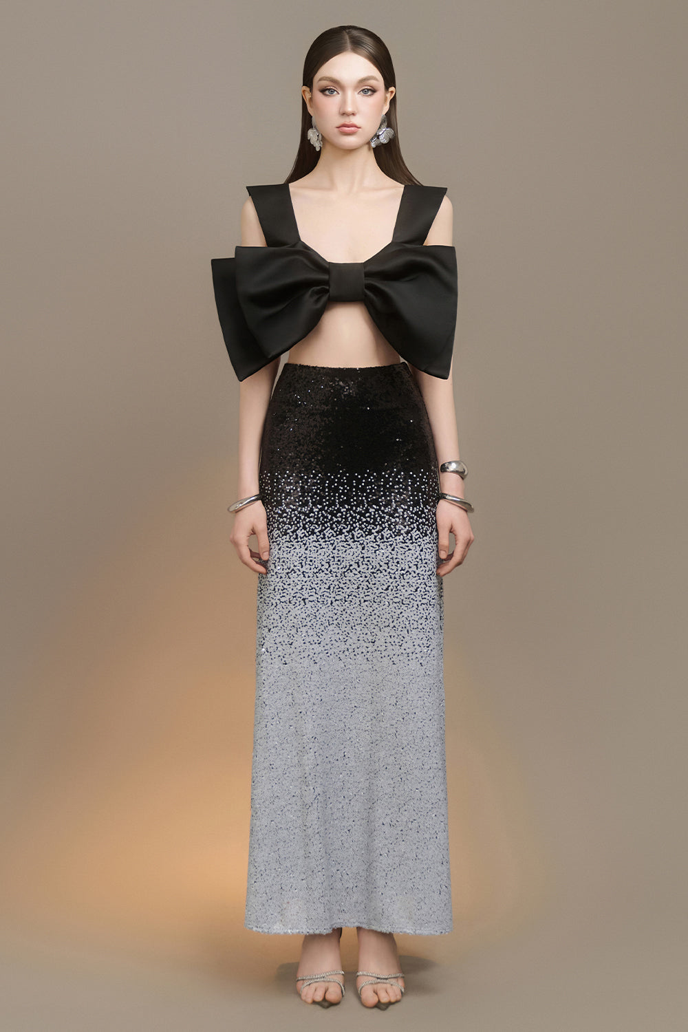 Aarina Fit and Flare Asymmetric Neck Taffeta Midi Dress